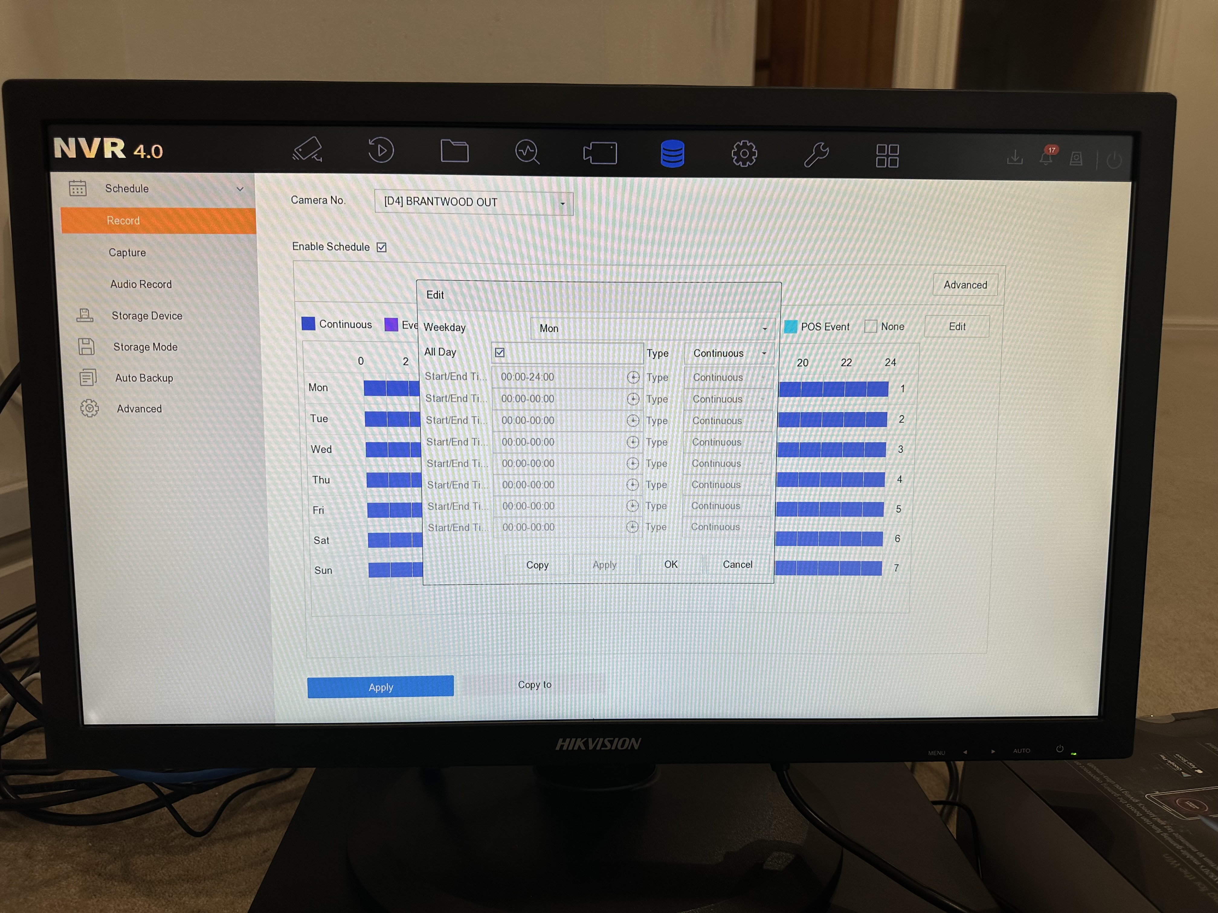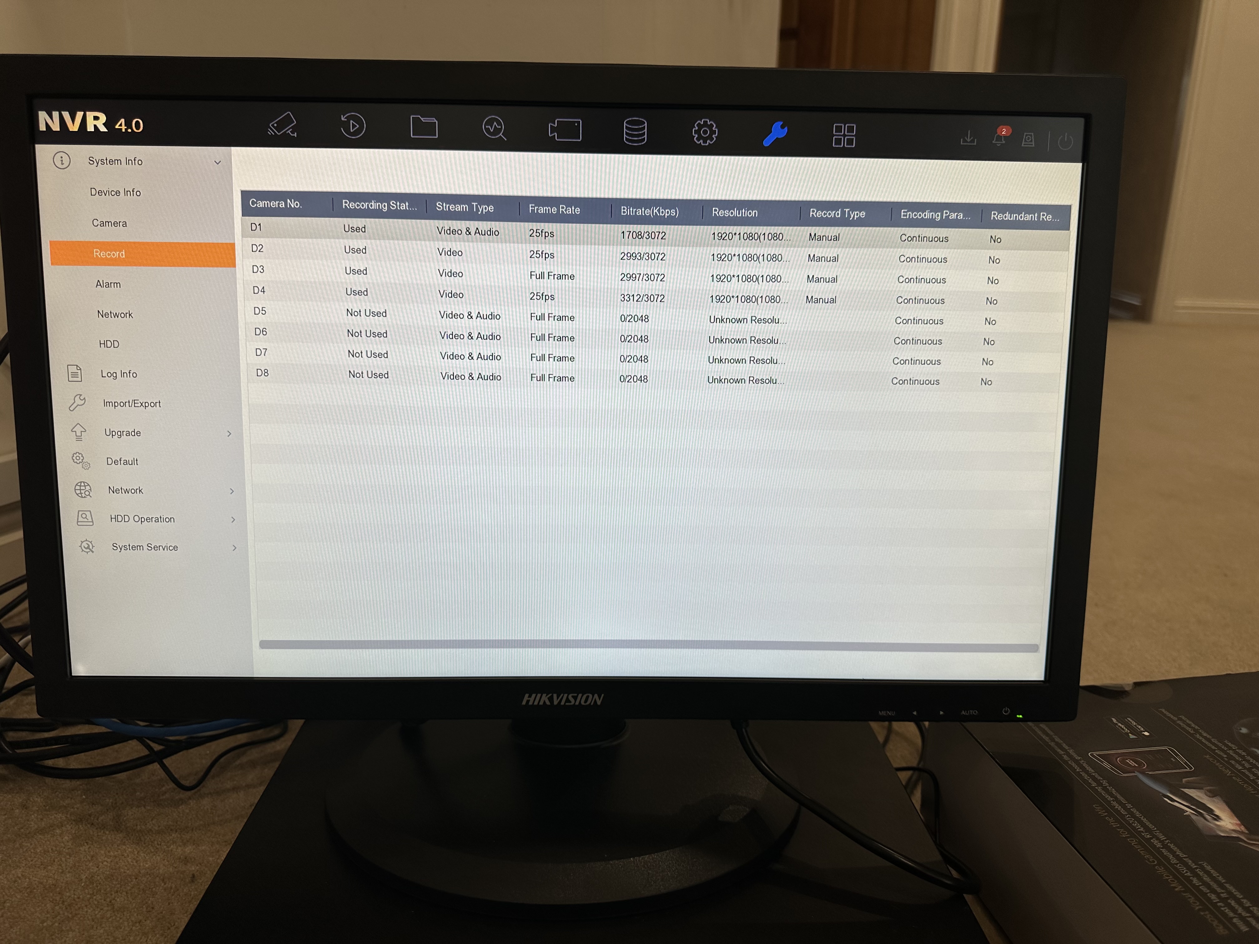 2. After NVR reboot each time, the NVR seems to go through the setup wizard to set language, date/time etc before displaying all the camera feeds.