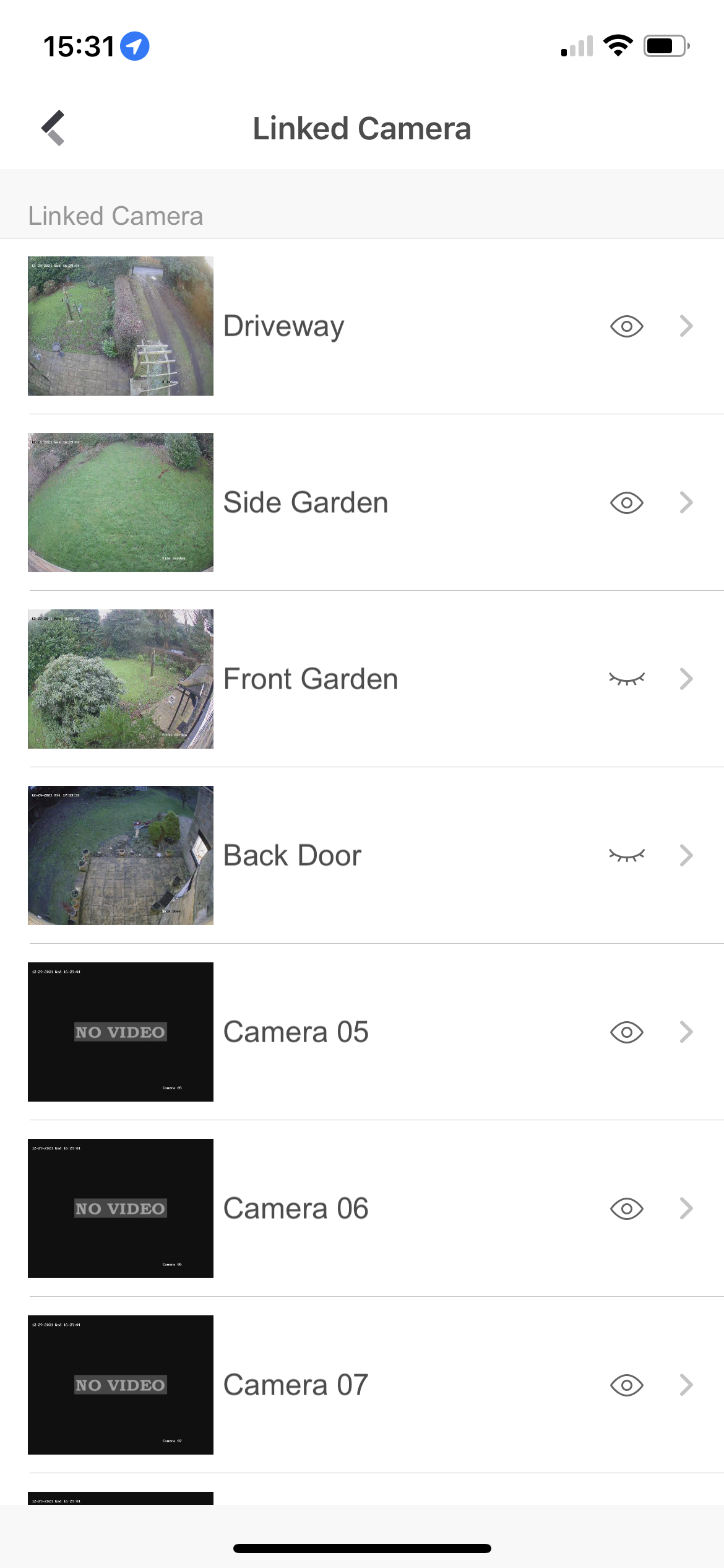 The two cameras are available/visible to HikConnect but disabled/hidden for live view. Just click the closed eye for each camera so that it's open. Then go back to your app Home Screen and drag down the screen to refresh the connection (or exit fully and re open the app). The cameras will then be working.