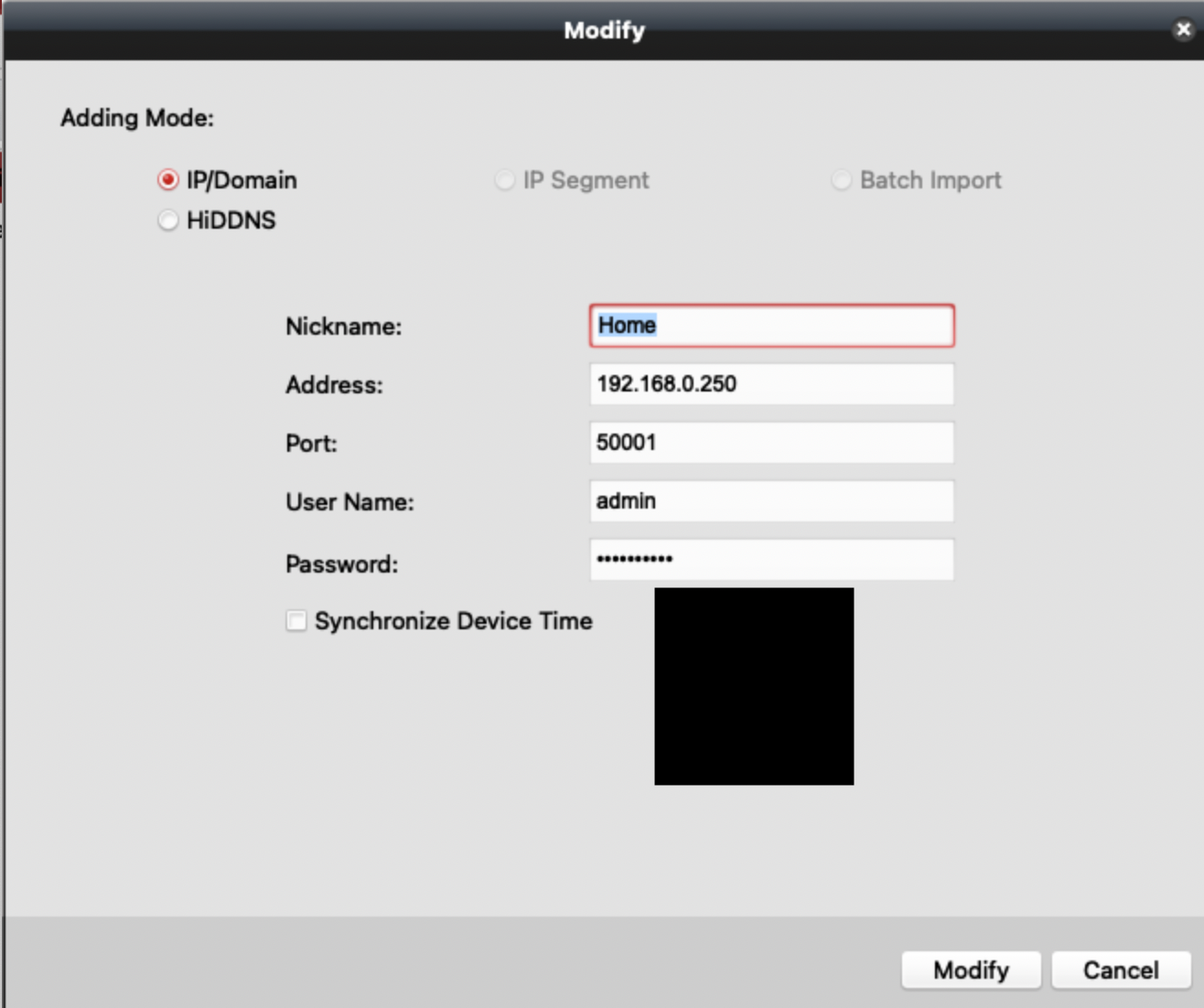 You just need to go into the Device Management tab at the top right of your screenshot. The software will be expecting to find your NVR at its old address 192.168.0.99. Select the NVR in that page and alter the address to the new one 192.168.1.99 and you’ll be back up and running (locally). You will see your device in the top panel of the page - either double click the line or highlight it and click modify to bring up the properties box for the connection - then just alter the one digit in the IP address from 0 to 1 and Save/Apply. Screenshots of mine below - though yours may appear different as my software is the Mac version: