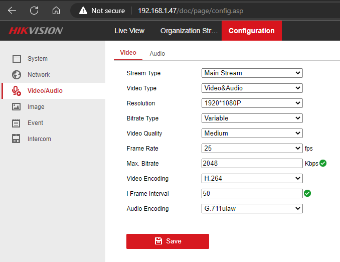 Looking at your screenshot I'm guessing you've adjusted the three volume levels in the audio tab? By default they're all set to 8. My interface looks very different to yours; are you on the firmware? For my DS-KV6113-WPE1(C) it is 2.2.57_230110.