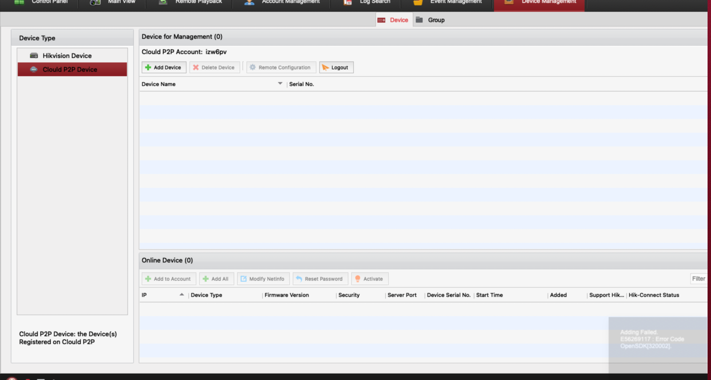 I also bought a DS-KV8213-WME1, and there is no option to connect to hik-connect, I can manually add it to the IOS app, but then I don't get any calls when they ring, and on the website it doesn't appear, on the IVMS 4200 I was able to add , but then when trying to put online, putting the serial number and the verification code, an error appears saying: Error Code OpenSDK (320002). I also created an account on sip linphone.org appears as registered, but when pressing the button, make the call but after answering an error message appears: Not Acceptable, can someone help?
