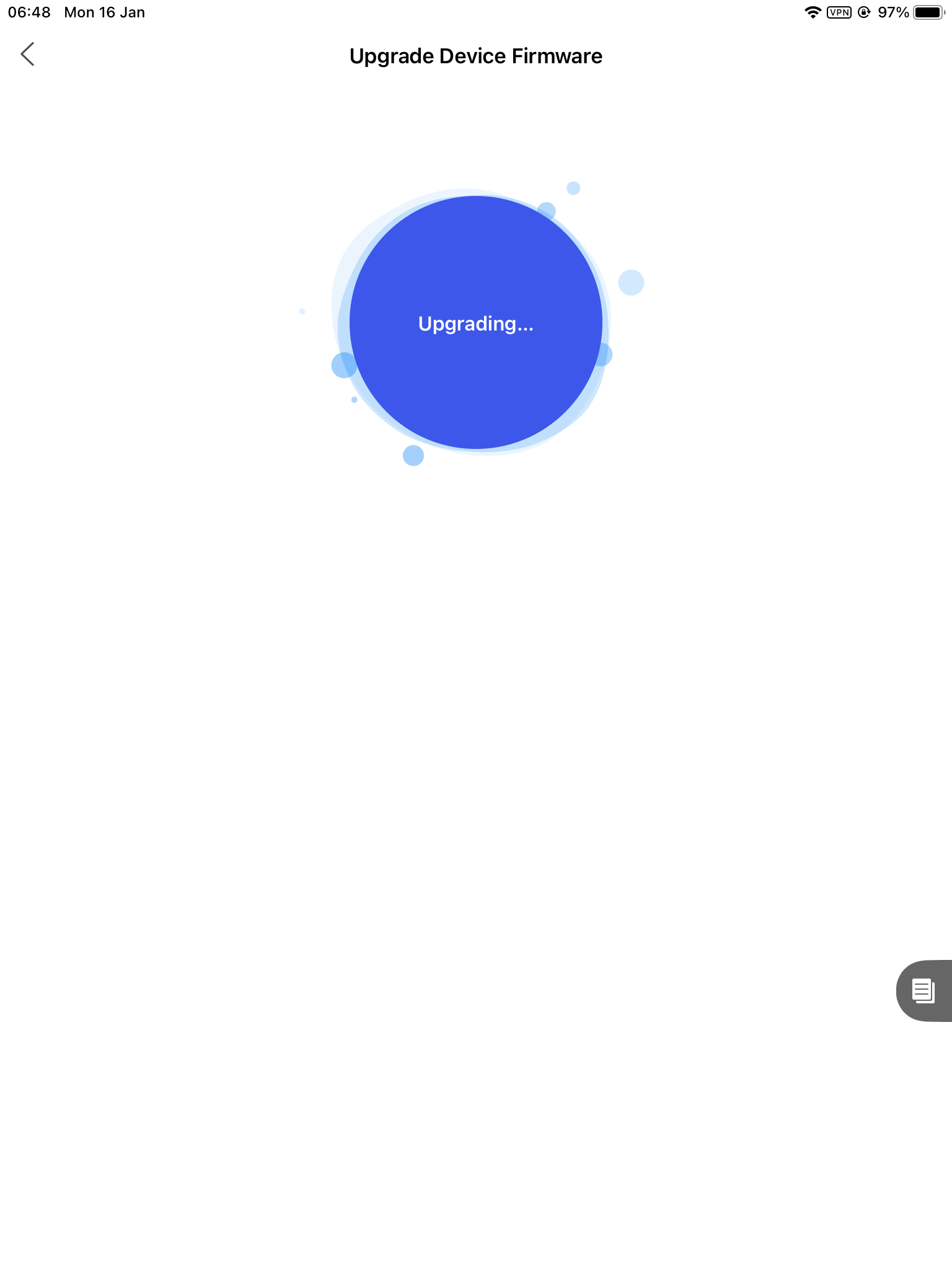 After waiting for half an hour, I did a reboot and went to the Maintenance menu but the purple circle is still there.