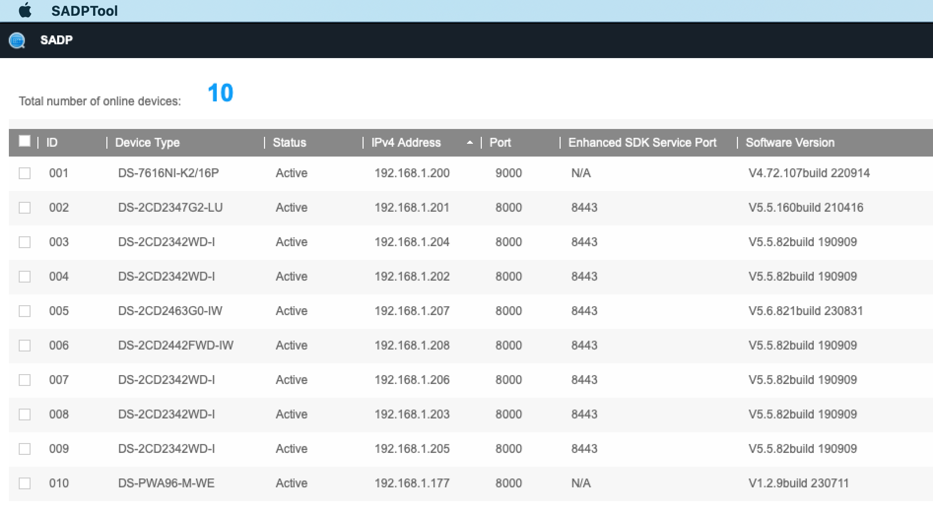 Can you share a screenshot from the SADP Tool showing the IP addresses of your NVR & cameras?