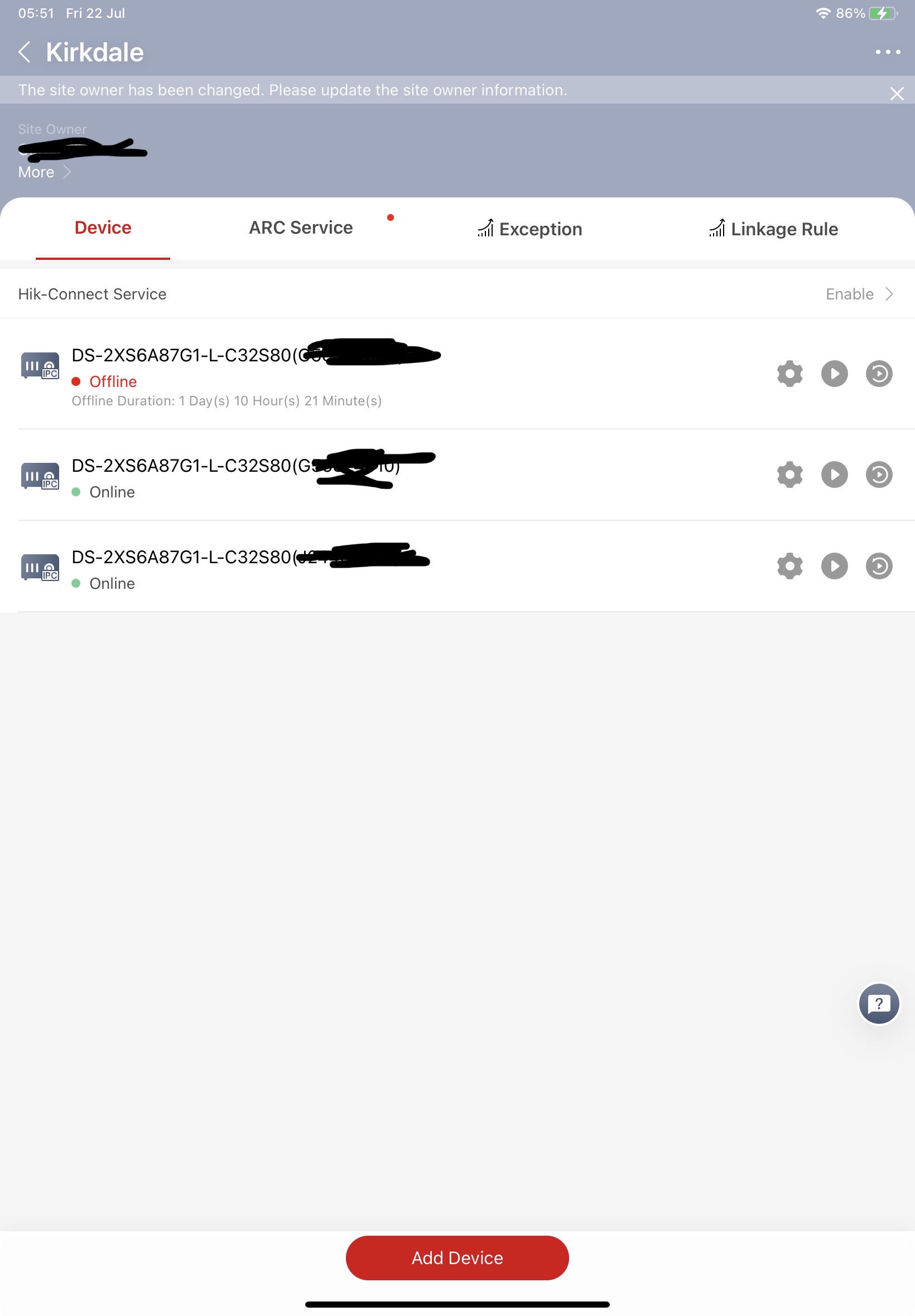 The units have never been a problem, they where installed in February and have operated without any hitch until now. Any ideas how to solve this problem would be fantastic. I have included a photo of the setup and also a screen shot of what am seeing on my Hik-proconnect account.