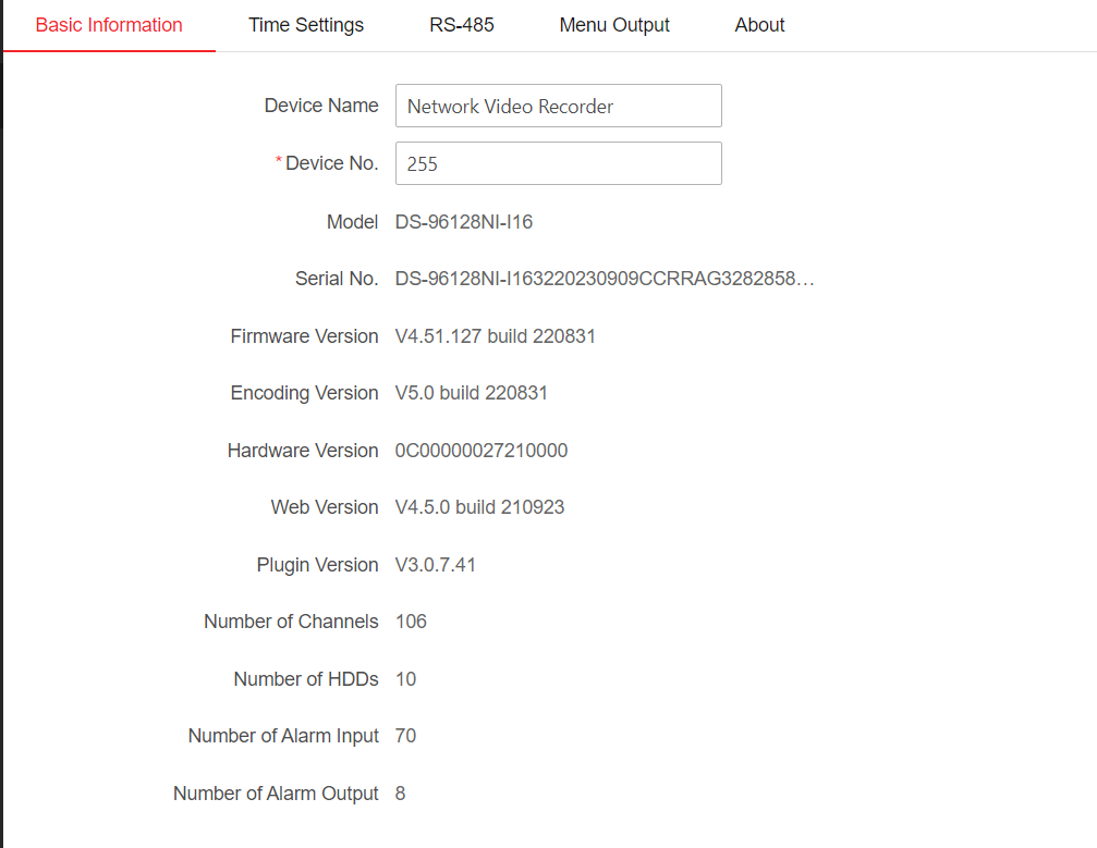 I have a Hikvision DS-96128NI-I16 with firmware version V4.51.127 build 220831.