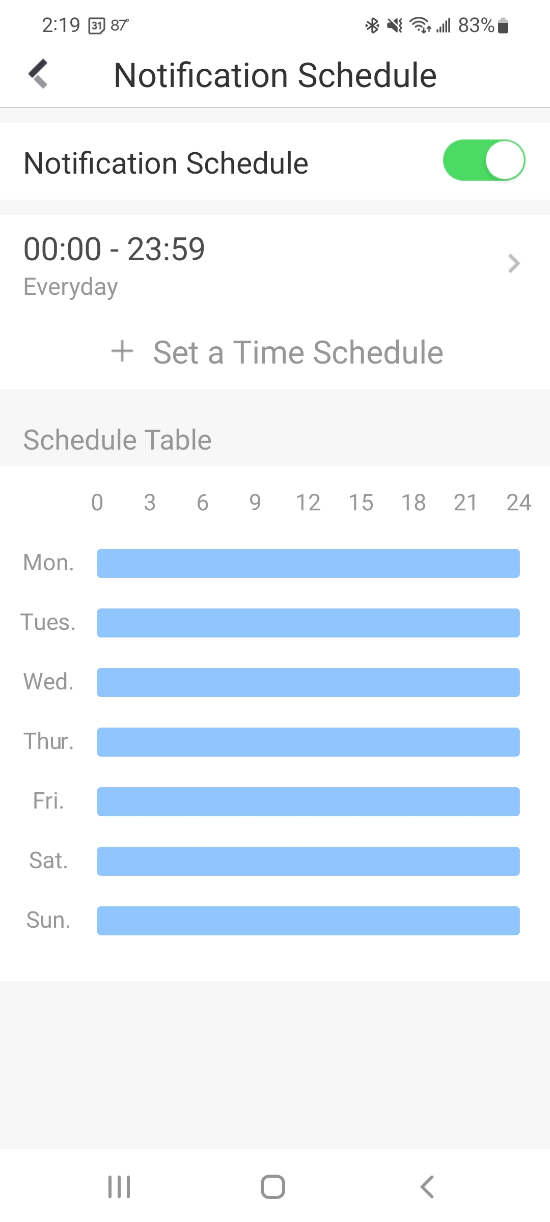 On my hikvision mobile app - the little bell icon on the right disables itself at midnight - how to I keep it on until I switch it off myself?