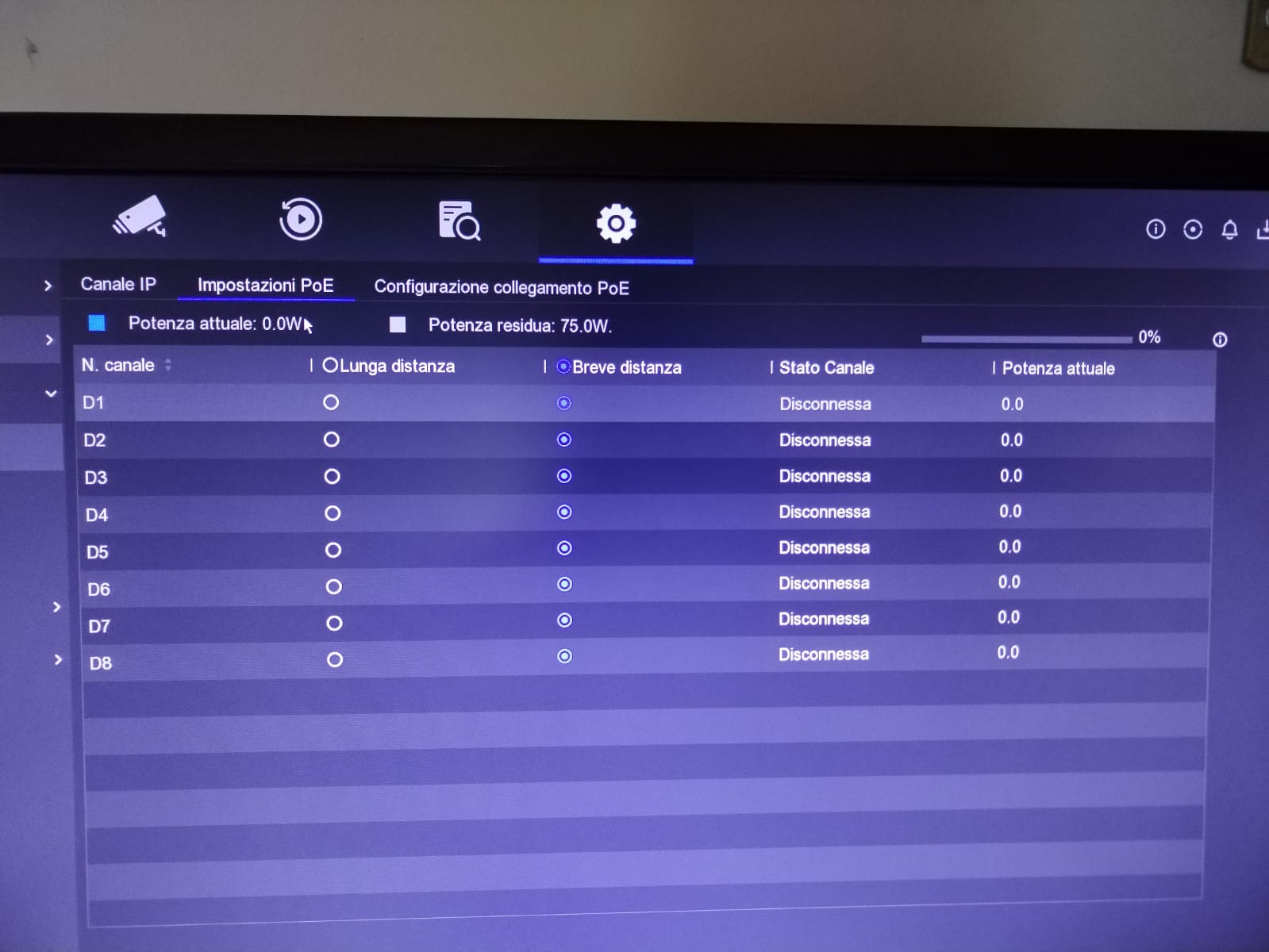 I tried to connected only ipcam to the nvr's poe ports (without external switch) but the lights remain off and the poe ports settings are enable (picture1).