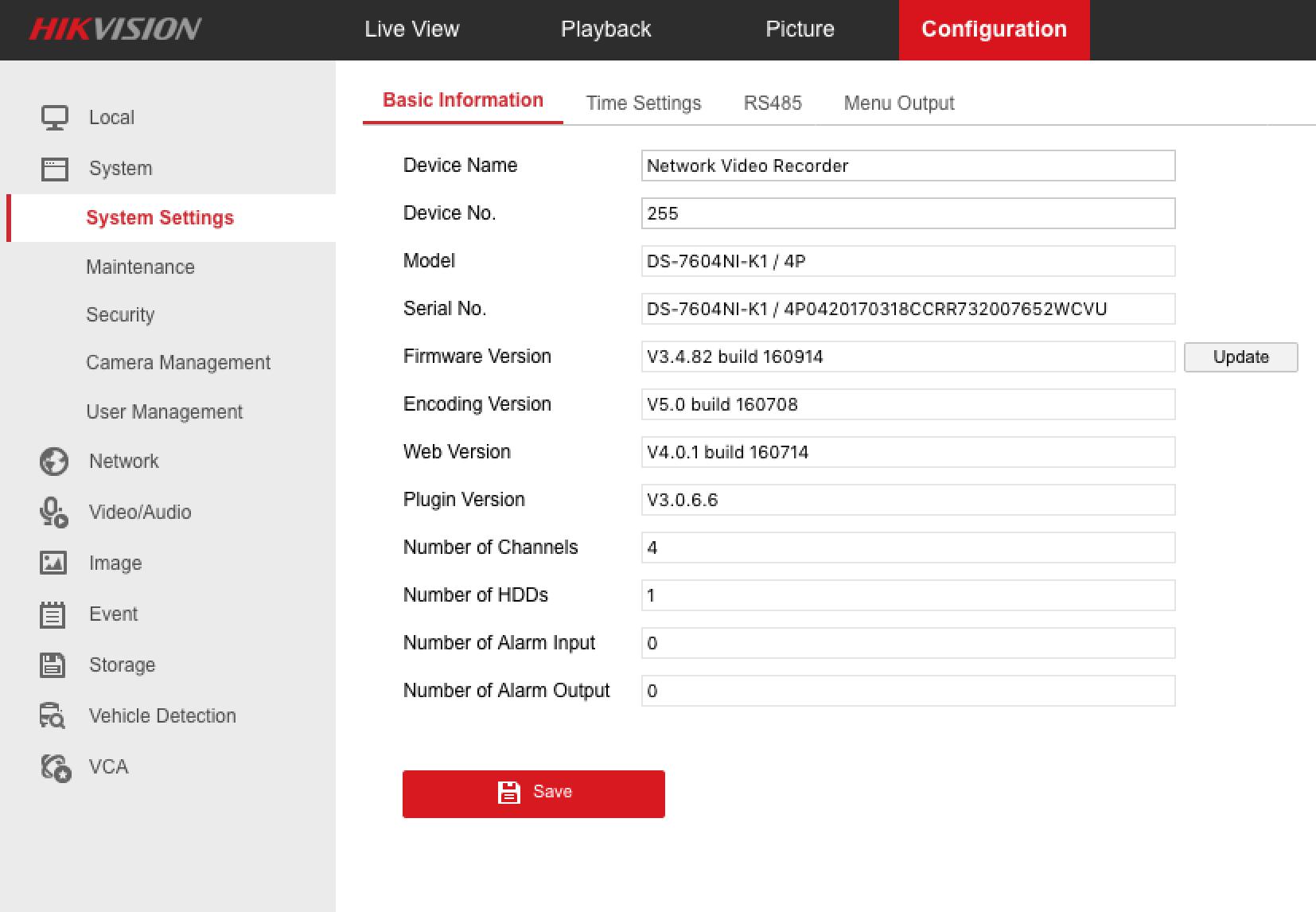 Below is the nvr info