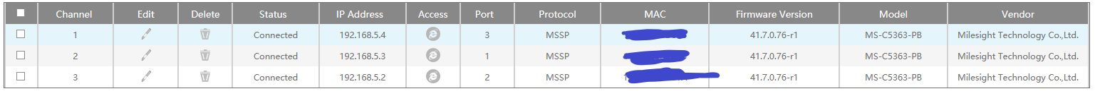 I can access the cameras individually via the web browser milesight GUI based on the assigned ip address by the Poe Nic 192.168.5.1.
