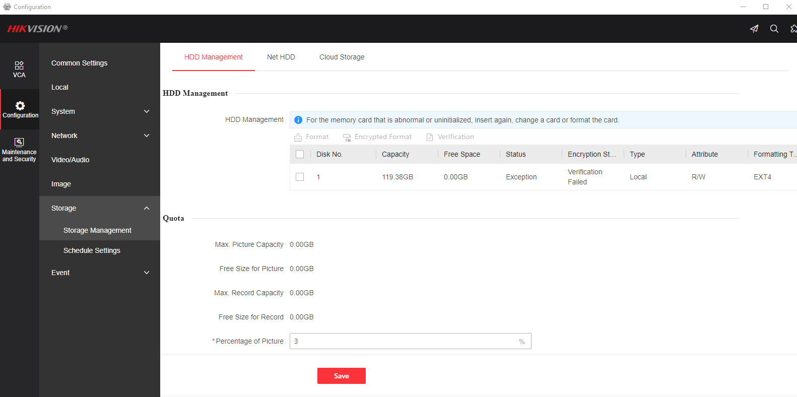 My SDcard was encrypted. But I cannot understand the relation to VCA upload on NVR HDDs