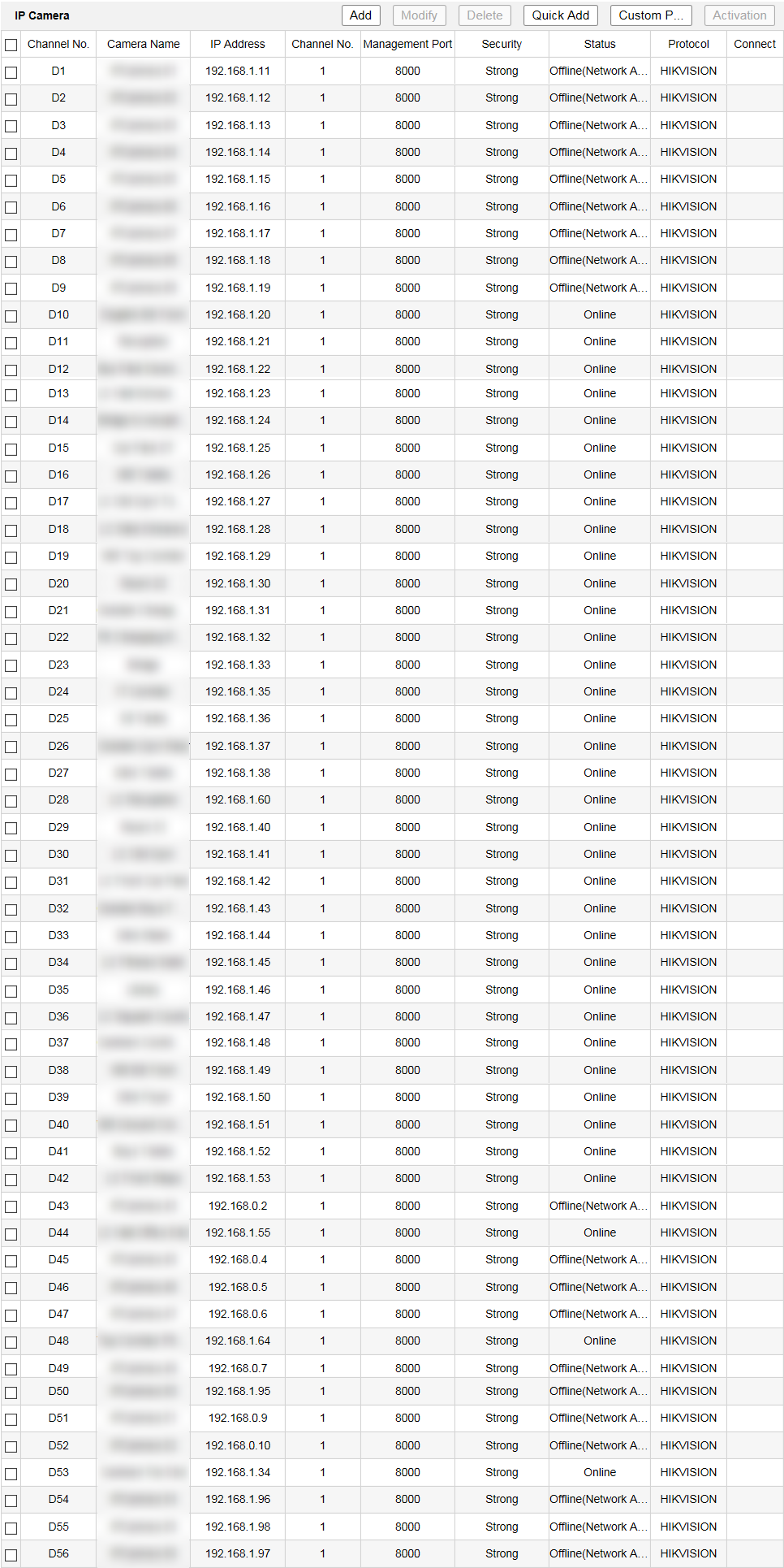 Currently I have a lot of disconnected cameras with apparently the wrong IP addresses. When I use the SADP tool to change the IP addresses to what the NVR thinks they should be, the cameras work. But after correcting a few I go back and more cameras have bad IPs. Something is sending out new IPs to the cameras.
