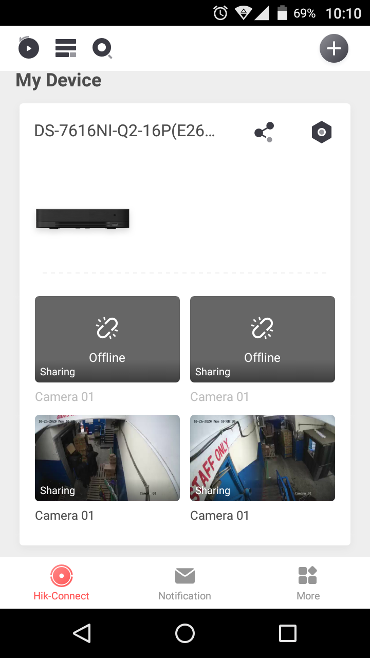 Hik-Connect Offline cameras - Hikvision DS-7616NI-Q2-16p NVR and Android