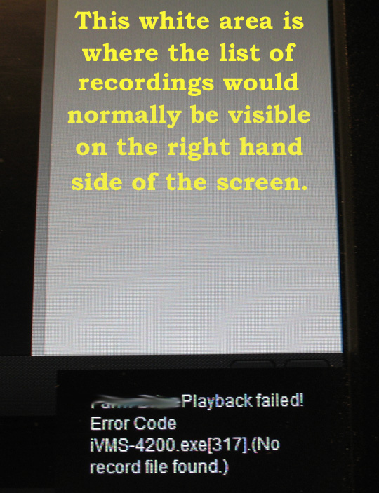 I do not get the normal list of video recordings and times on the RH side of the screen.I should say at this time that the cameras are showing perfectly, as they should be, in Main View mode. I am no expert but I am fairly certain that the problem is that, for some reason, the cameras are not being recorded and that my problem lies with my NVR. Would someone be kind enough to confirm this for me if that is my problem for a start please ? Thank you.
