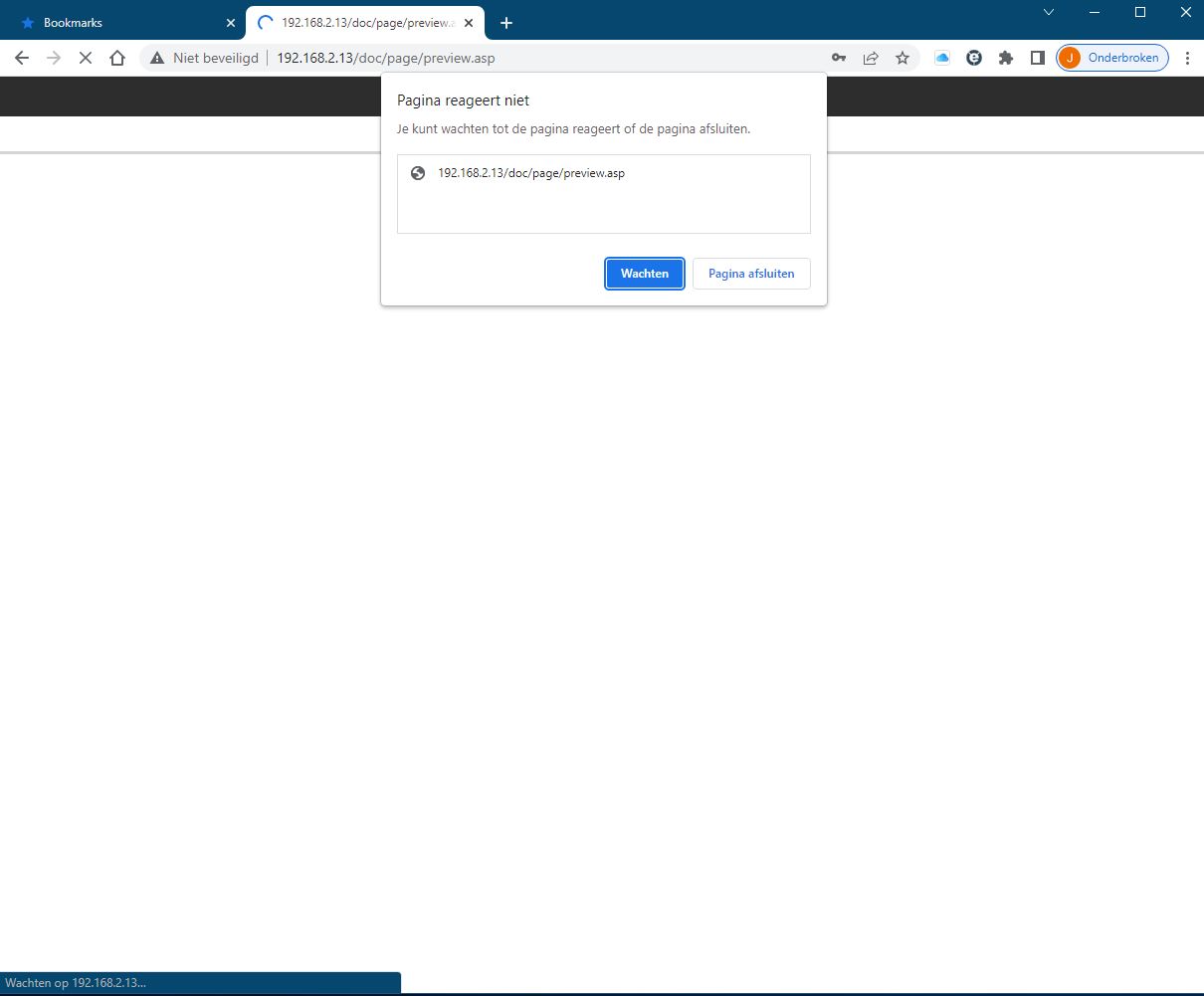 It is indeed only when te the PCs try to access the NVR via the network that there is a problem to view any page after a log in on the NVR and the browser gives a notification that the page doesn't respond. See the attachment.