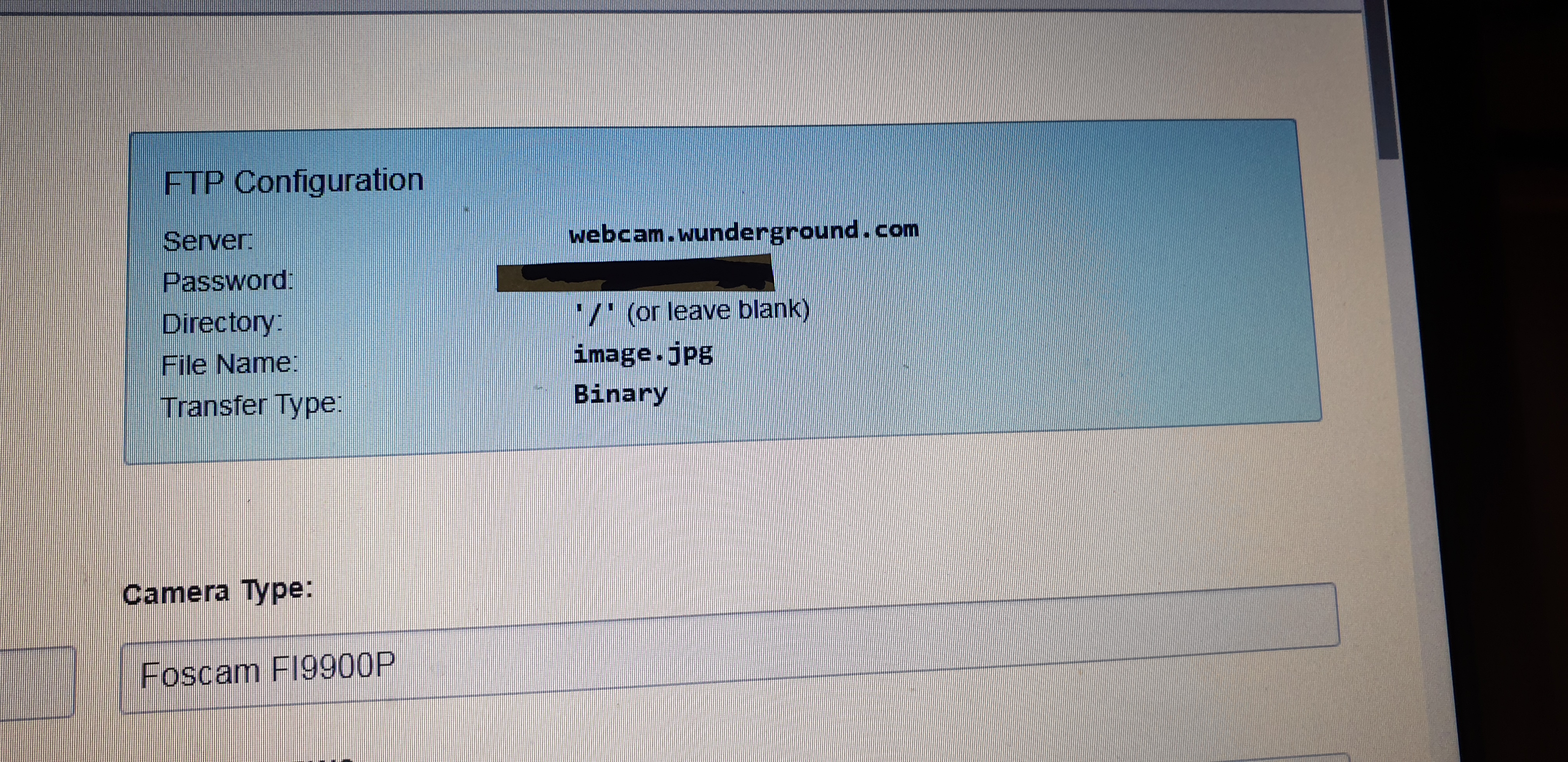 I have a wunderground account and have registration details for my FOSCAM FI9900P.