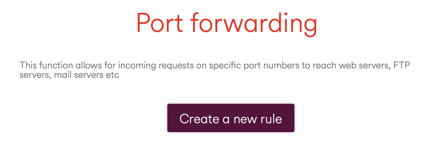 3 - log in to your VM Hubs homepage at 192.168.0.1 and go to Security > Port Forwarding