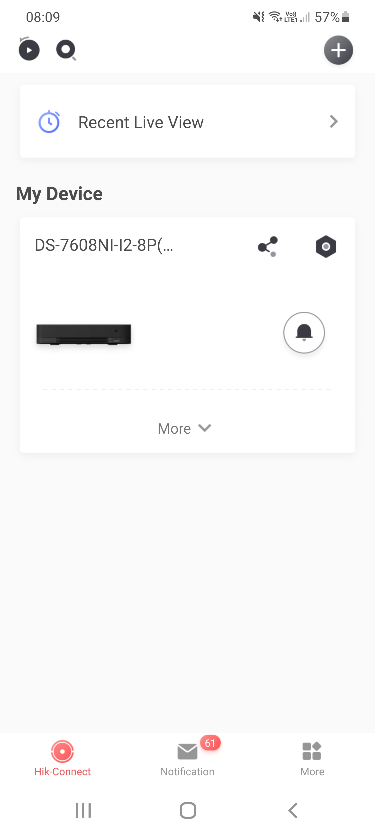 That is especially important. You can connect via the IP address BUT with a VM hub you need to add two sites - one with the local NVR IP and one with the VM IP. You can only connect to the local IP when on your own WiFi, whereas you can only connect to the remote IP (reliably) when you're not on your own WiFi. That's just the way the VM Hub works - it will not allow you to access the NVR using the external address if you're inside the LAN. Additionally if you connect via IP you will never get a notification of an event as the app does not support it. On the app next to your device click the little rectangular icon - what appears? If you get a page titled "Device Information" you're connected via IP. If you get a settings page with Linked Camera, Notifications etc you're connected via HikConnect.