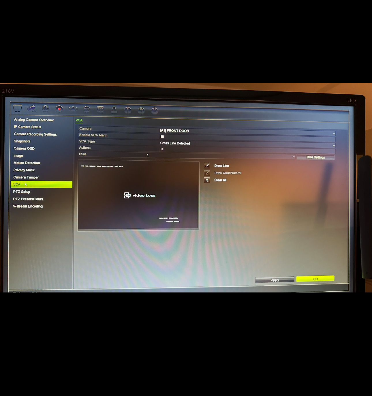 I have since changed the hard drive in my DVR but now on playback it shows a blue line & I cannot see the intrusion marks.?