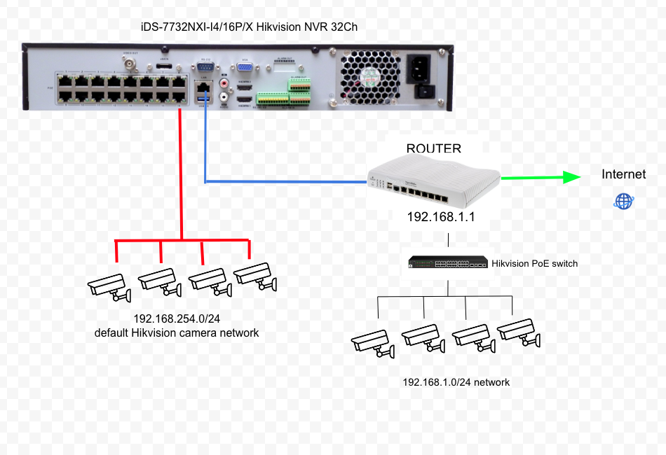 I have amended the diagram above for more clarity. I still can't believe this is what Hikvision support (although there is NO official documentation about this).