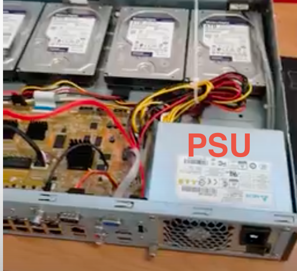 be the inside of your NVR and I've marked the PSU. The model number will be on the white label stuck on the psu. search the internet and if you find one make sure it is exactly the same model.